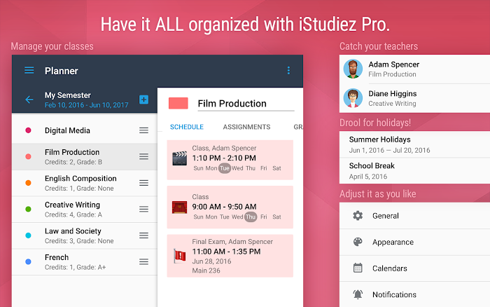 iStudiez Pro app is also available for iOS, OS X and Windows platforms and syncs its data between all its versions smoothly and free of charge.