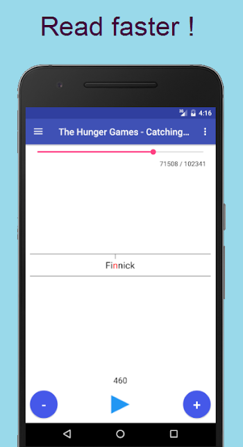 In the full version you get a chance to change the read speed of up to 1500 words per minute.