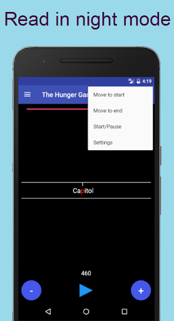 In the full version you get a chance to change the read speed of up to 1500 words per minute.