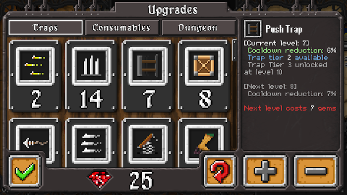 As you successfully purify your dungeons throughout the world from the pesky invaders, you will gain access to more powerful traps and devious utilities.