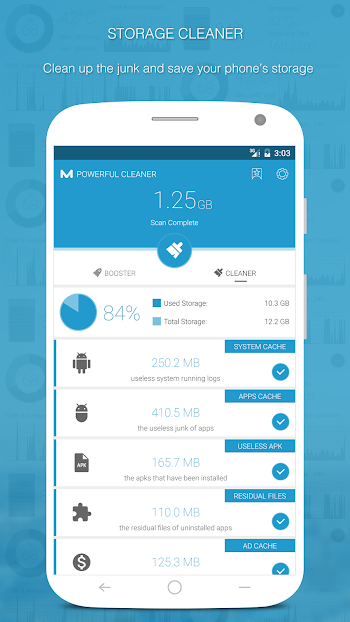 Clean the junk and save your storage, including: system cache, apps cache, useless apk, residual files, AD cache.