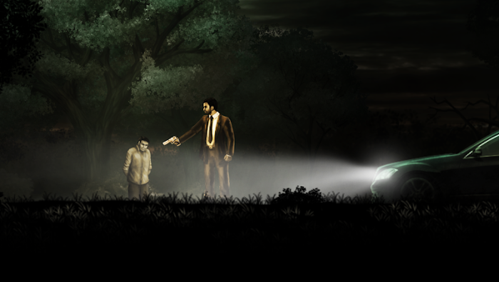 You play the role of a guy who happens to be in the wrong place at the wrong time. You are dragged into a dark forest, but on the verge of death, you are mysteriously saved from your killer by a someone or something.