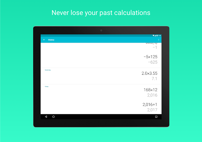 - • View your calculator history by swiping down