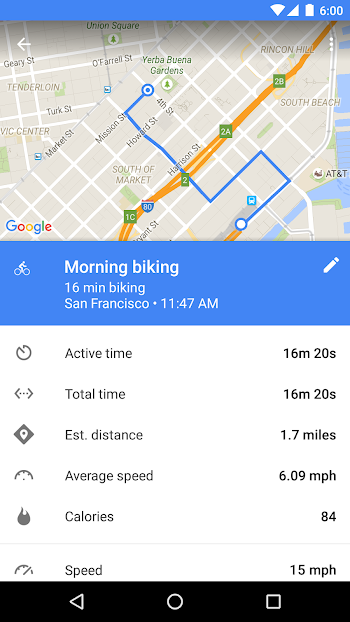 • Get instant insights. See real-time stats for your runs, walks, and rides. Google Fit will record your speed, pace, route, elevation, and more so you can stay motivated and on track.