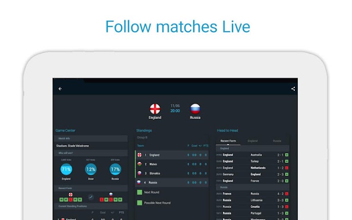 ● Impress your friends with the live table and live scores helping you know what every result means for every team!