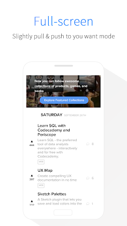 Full Screen: Slightly pull up to enter full screen, pull down to invoke search box, very simple full screen experience