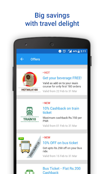 12. Book Train Tickets - Book Train tickets through IRCTC Authorized Agents and get instant cashback for ordering food or booking hotels during your train trip.