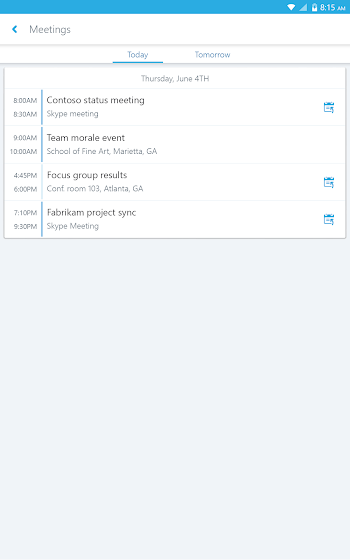 -Look at your upcoming meetings and join via one click