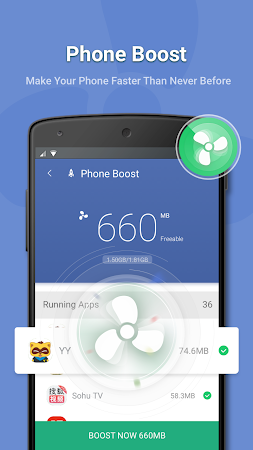 By cleaning unnecessary apps in background, this speed booster frees up memory (RAM), and save battery power. Even better, the durable boost effect keeps your phone run in super faster speed.