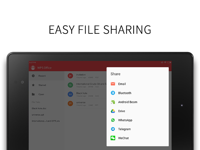 WPS Office + PDF is the smallest-sized (less than 35 MB) all-in-one free office-suite app. It's designed to help you create, view and edit documents for work and school quickly and easily, anywhere and at any time, on Android phones and tablets. To date, WPS Office + PDF has over 600 million users worldwide.