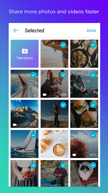 • Instantly share lots of videos and high-resolution photos in one go