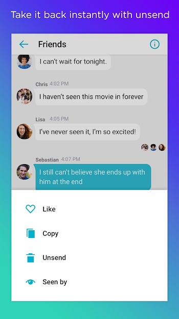 • Yes, take backs! Tap "Unsend" to remove photos and messages from a conversation