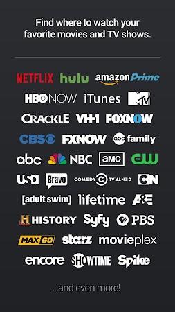Universal search to easily find where to watch TV Shows or Movies available across more than 70 sources like Netflix, Hulu Plus, Amazon Prime, Xfinity, DirecTV, HBO GO, HBO NOW, Google Play, Crackle, MTV, CBS, Vudu, FOX, CW, PBS, Lifetime, YouTube, A&E, History Channel, MAX GO, Showtime, Cartoon Network, Comedy Central, VH1, ABC, Starz, EPIX and Fandango, all in one app. What are you waiting for? With Yidio, finding what you want to watch has never been easier.