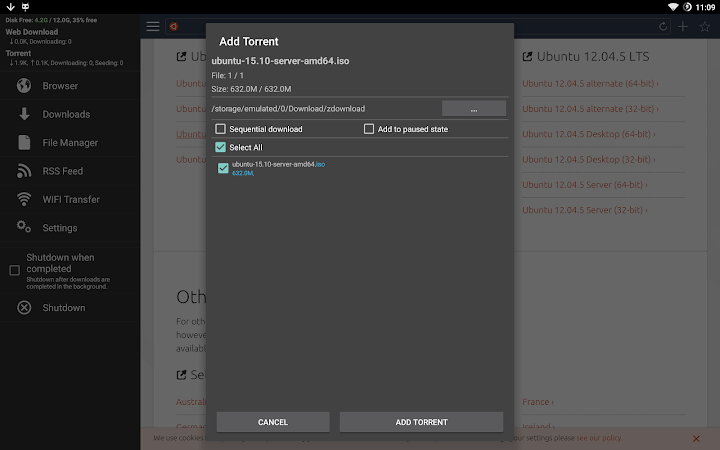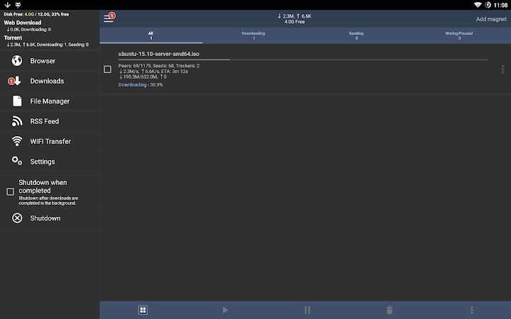 - Actions for completed torrents – notification, move, media scanner, automatically remove (✔Pro only) / seed