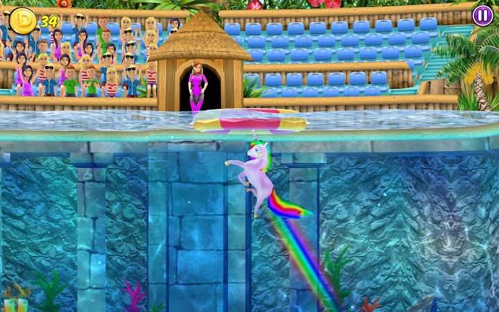 Collect coins as you swim and dive in the pool, and use them to buy new stuff. Have you ever seen a dolphin dressed as a princess, or a cheerleader? How about a fairy, or a bride? There are tons of gorgeous outfits you can choose from to make your new dolphin BFF look fabulous. You can even pick new animals and characters, such as an orca, shark, mermaid, or even a unicorn! With more than 40 options to choose from, you’ll have endless fun!