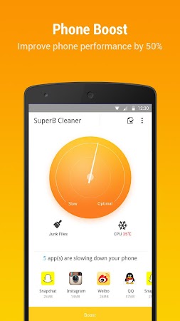 Albeit only 2 MB, Super B Cleaner is a small but effective memory boost tool and battery extender. It can clean unnecessary background apps to boost your phone and save battery power. With proper management, its one-tap boost can make phone faster by 50% and save battery power by 20%. Favored by users worldwide, Super B Cleaner is one of the best android booster for Android.