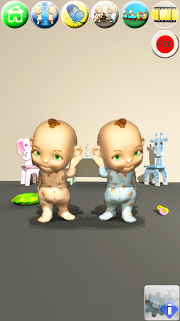 Talk with the talking twin babies. They respond with their funny voices and respond to what you say or your touch. Spend a great time with these cute talking twins and their play activities. Now with 4 exciting games to play!