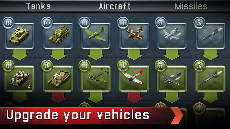 - Research and upgrade legendary military vehicles: Sherman, Tiger, IL-2, V-1 flying bombs and many more