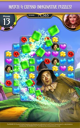 - Match 3 with new and unique gameplay based on the beloved Wizard of Oz movie and characters!
