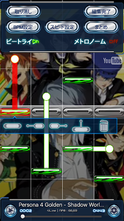 TAPTUBE provides configuration options to change game speed, number of line, long note on/off, slide note on/off, etc.
