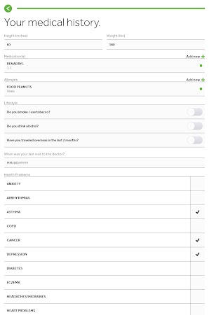 - Create and update your medical history.