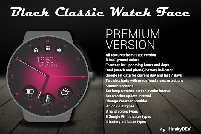 The HuskyDEV Black Classic Watch Face works great with squared and round watches.