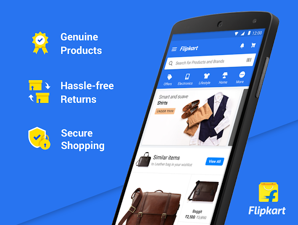 Online shopping with Flipkart is very easy as you get to shop from the comfort of your home and get products delivered at your doorstep. By downloading the Flipkart free online shopping app on your Android phone or tablet, you can effortlessly browse our massive collection of more than 80 crore products from multiple categories including mobile phones, fashion wear, electronic devices, accessories and consumer durables.