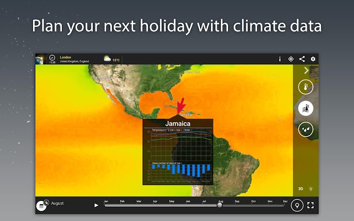 • Switch to climate view and check the weather in a holiday destination at any time of the year