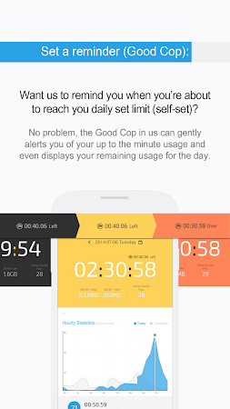 With any addictions, it's hard to break free! The Alarm and Lock features alerts you when usage limits are exceeded and at the worst case scenario, locks you from using those pesky apps.